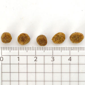 小型犬の子犬でも食べやすい極小粒サイズ粒のサイズは、お口がとっても小さな小型犬の子犬でも食べやすい超小粒です。