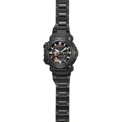 シリーズ誕生となる1993年から継承している左右非対称のフェイスデザインに、アナログ表示を実現したGWF-A1000は、大型の蓄光時分針により視認性も向上。