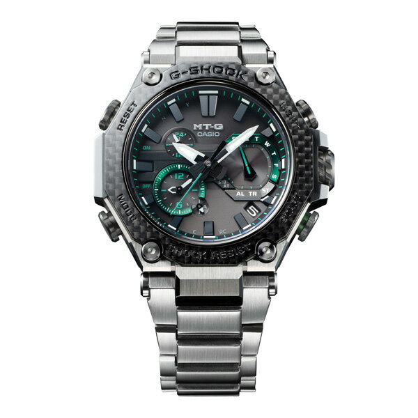 ≪CASIO カシオ≫ カーボン繊維強化樹脂によるモノコックケースとメタル素材を融合したMTG-B2000をベースに、ベゼルパーツにもカーボン素材を採用し軽量化を図ったモデルです。
